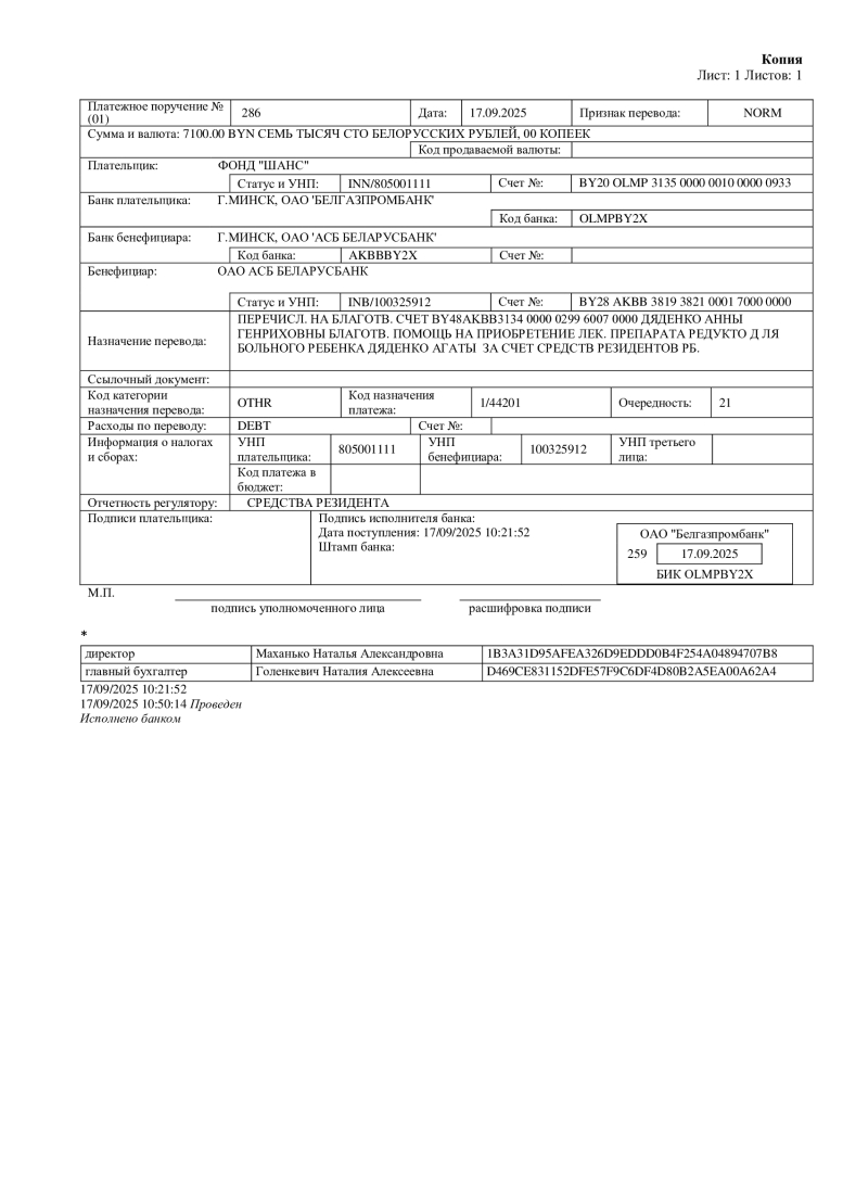 Мы обращаемся к вам с просьбой в оказании финансовой помощи для приобретения для нашей дочери препарата фосфора на год.