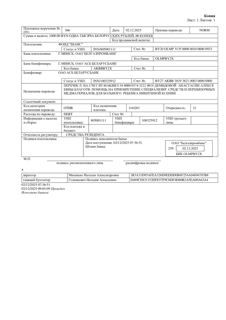 Хочется выразить в очередной раз огромную благодарность всему коллективу Фонда "Шанс" и всем благотворителям.