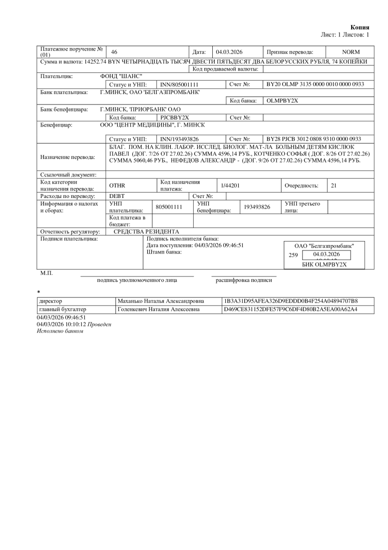 Просим Вас оказать помощь в оплате дорогостоящего анализа.
