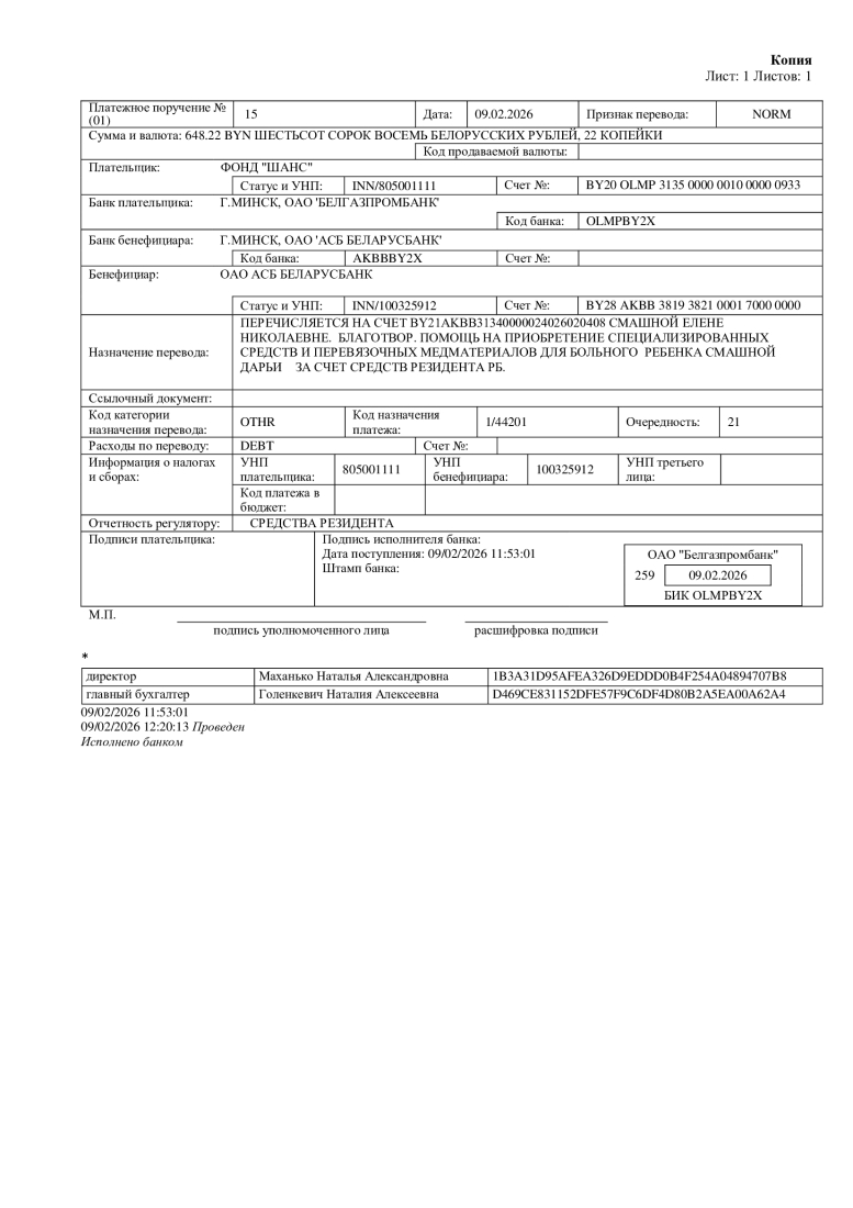 Уважаемые сотрудники фонда «Шанс» и благотворители!